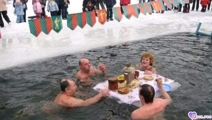 Нырнули в ледяную воду,