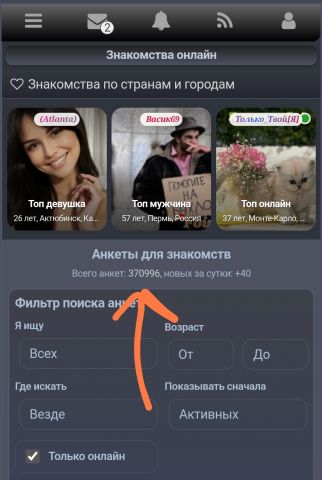 ДеВуШкА_ДьЯвОлА, Чтобы найти по нику откройте боковое меню на сайте и там ссылка поиск, зайти можно с любого места на сайте, с раздела знакомств можно перейти в поиск нажав на число возле Всего анкет: