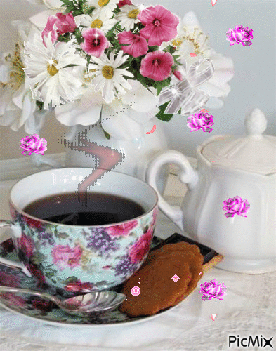 chashka-aromatnogo-kofe-i-buket-cvetov — Скачать бесплатно