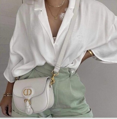 Блузка__брюки_и_белая_сумка