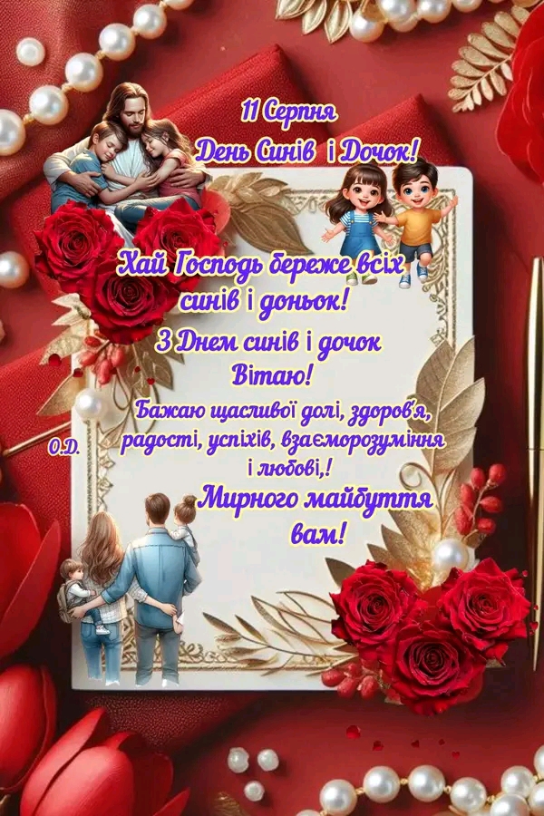 Описание: 11_серпня_День_синів_і_дочок__Вітаємо_всіх_синів__дочок_і_всіх_батьків__яким_доля_подарувала_дітей___Діти_-це_скарб_для_батьків__Немає_в_світі_нічого_кращого_і_чистішого_за_любов_батьків_до_дітей_і_любов_дітей_до_батьків__Нехай_же_наші_дочки_і_сини_з